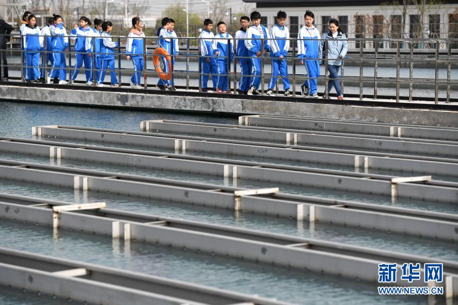 3月21日,水廠工作人員向?qū)W生介紹自來(lái)水生產(chǎn)流程。