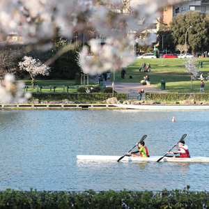 3月24日,佩戴口罩出行的市民從意大利首都羅馬盛開的櫻花樹下走過。