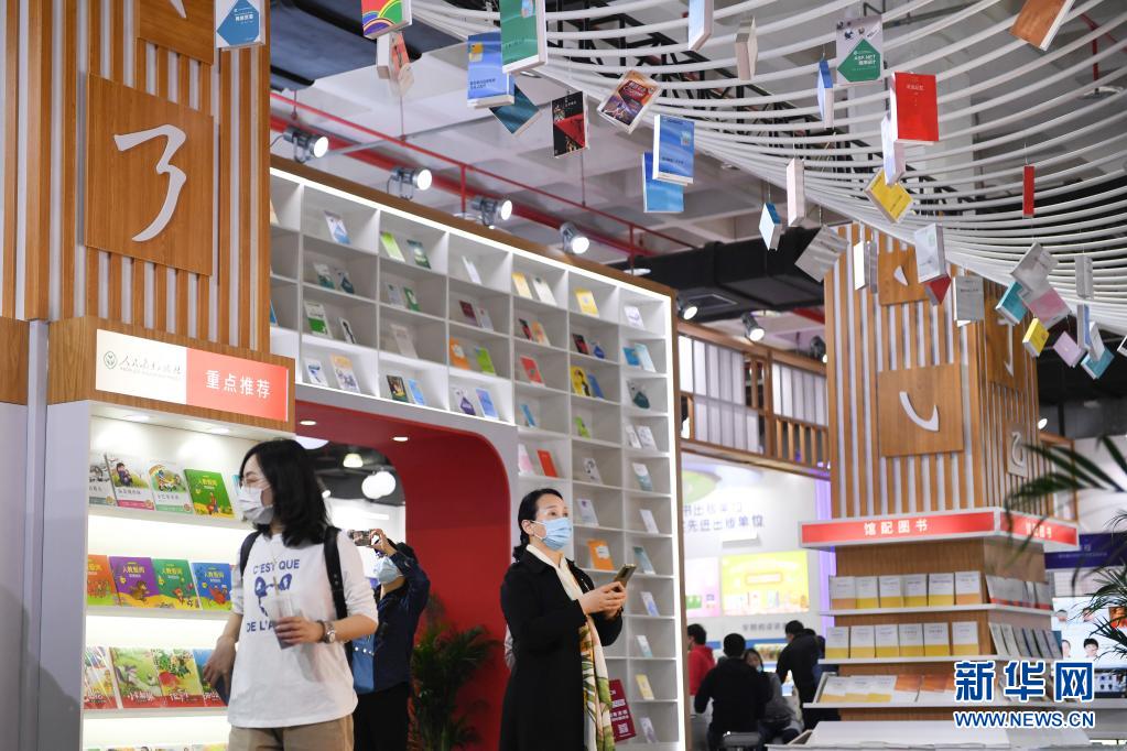 3月31日,參展人員在2021北京圖書(shū)訂貨會(huì)上參觀。