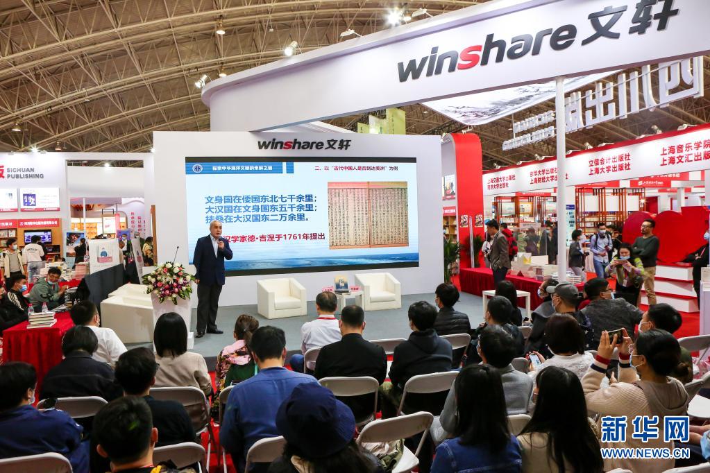 3月31日,參展人員在四川出版展區(qū)參加《海上傳奇》新書(shū)分享會(huì)。