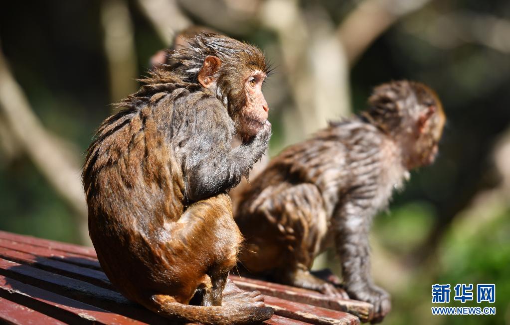 4月4日,南灣猴島保護(hù)區(qū)里的獼猴在上岸后曬毛。