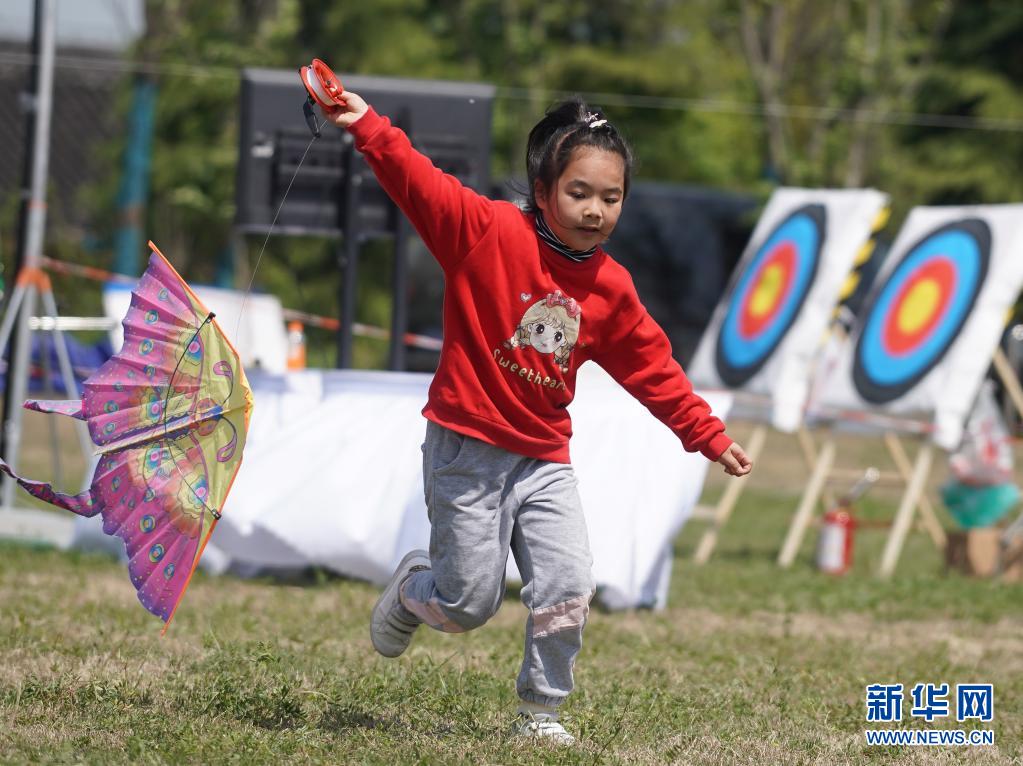 4月10日,小朋友在第二屆金陵風(fēng)箏會上放風(fēng)箏。當(dāng)日,第二屆金陵風(fēng)箏會在江蘇省南京市浦口區(qū)永寧街道舉行。人們放飛風(fēng)箏,歡度快樂時光。新華社記者 季春鵬 攝