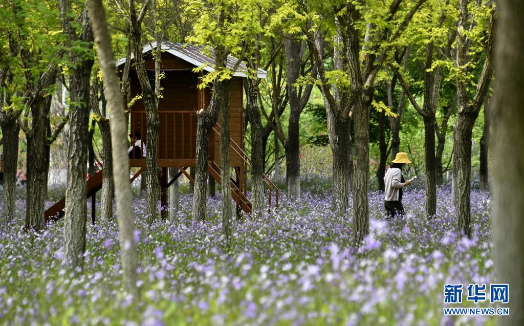 4月24日,市民在北京北臧村鎮(zhèn)綠色港灣園區(qū)賞花。
