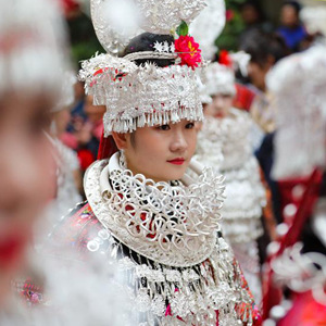 今年姊妹節(jié)前夕,母親張?jiān)雅畠菏⒀b的銀飾拿到銀飾店里進(jìn)行清洗,希望女兒能在盛裝巡演上展示最美的一面。4月25日姊妹節(jié)當(dāng)天,張佳麗早早起床,在母親和同學(xué)的幫助下,開始化妝、穿衣、佩戴銀飾,一直忙到9點(diǎn)才準(zhǔn)備完畢。身著盛裝站在巡演隊(duì)伍中,張佳麗說:“這是我們苗族同胞最大的節(jié)日,無(wú)論身處何地,我都會(huì)如約回家參加活動(dòng)!”