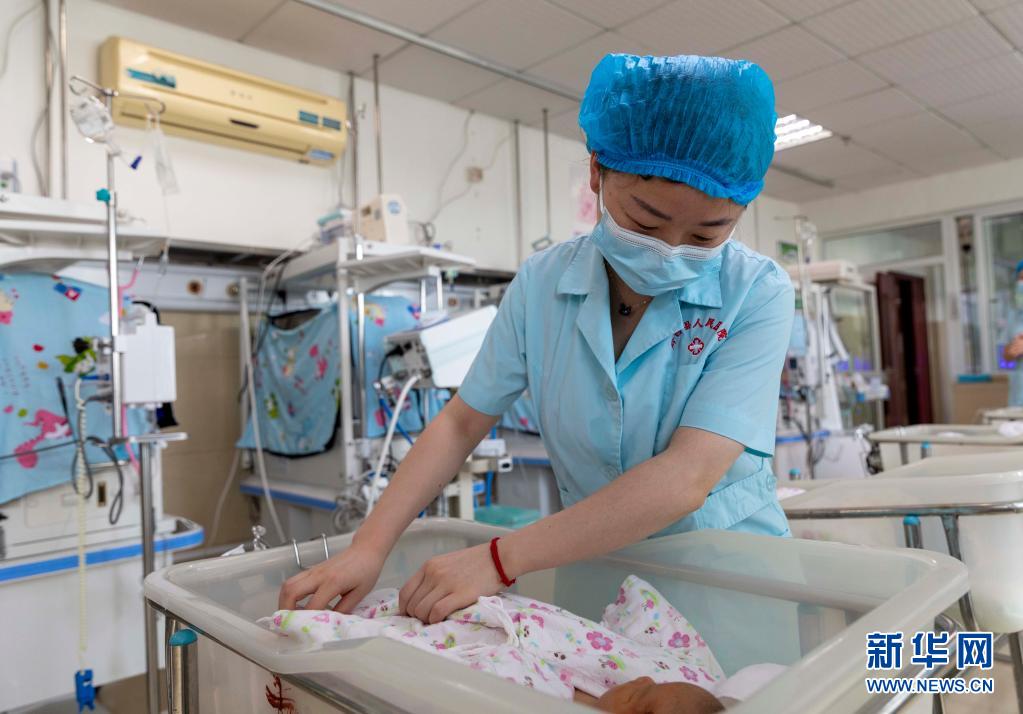 5月11日,護士在貴州省黔西市人民醫(yī)院新生兒科為患兒做晨間護理。