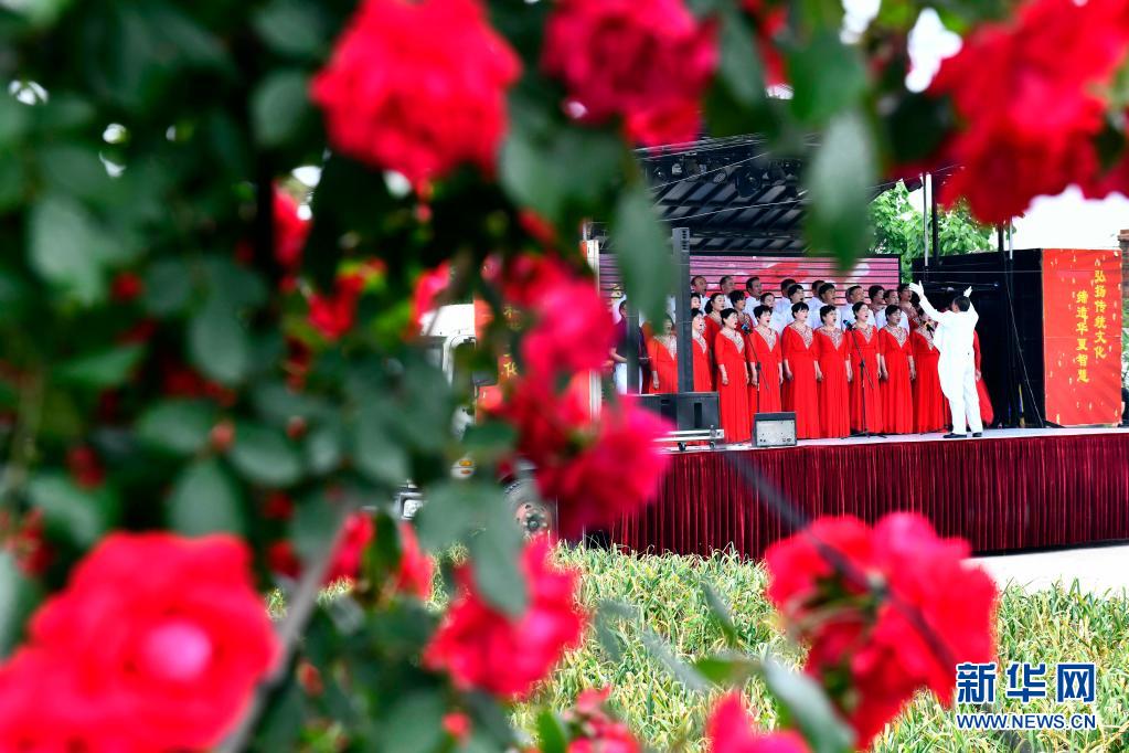 5月21日,在棗莊市臺(tái)兒莊區(qū)馬蘭屯鎮(zhèn)西張莊村,“學(xué)黨史惠民”文藝小分隊(duì)為群眾表演節(jié)目。
