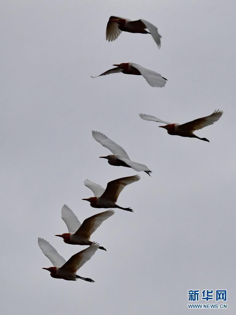 牛背鷺在易貢國(guó)家地質(zhì)公園上空飛翔(5月22日攝)。