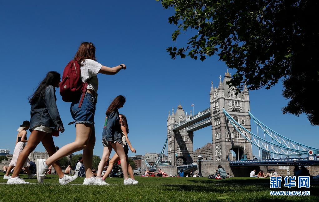 6月1日,人們從英國(guó)倫敦泰晤士河南岸的草坪上走過(guò)。