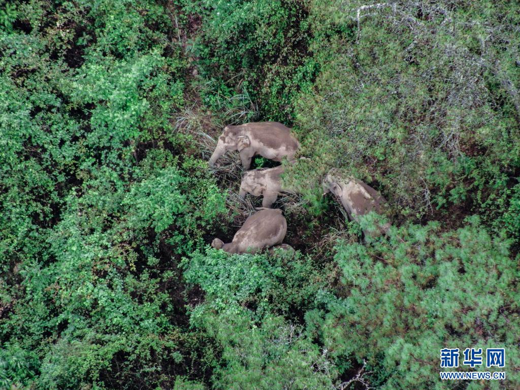 6月5日在云南省昆明市晉寧區(qū)拍攝的野象(無人機照片)。