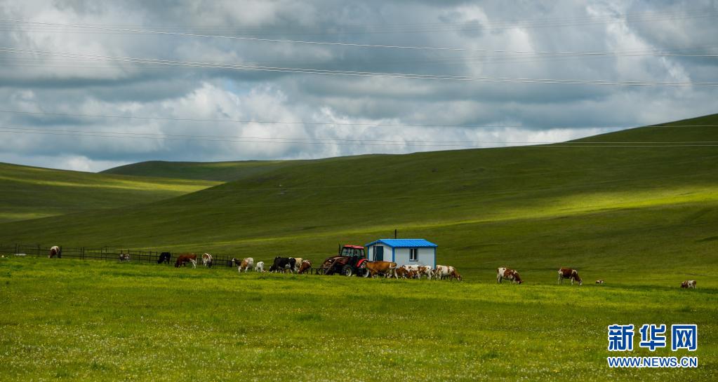這是內(nèi)蒙古呼倫貝爾332國(guó)道旁的草原風(fēng)光(6月10日攝)。