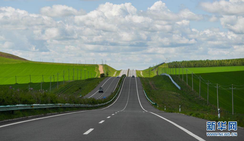 內(nèi)蒙古呼倫貝爾332國(guó)道旁景色迷人(6月10日攝)。