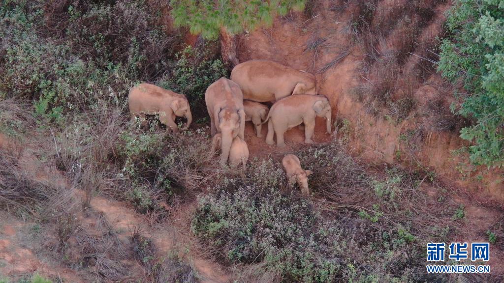 6月15日在玉溪市易門縣十街鄉(xiāng)拍攝的象群(無人機照片)。新華社發(fā)(云南省森林消防總隊供圖)