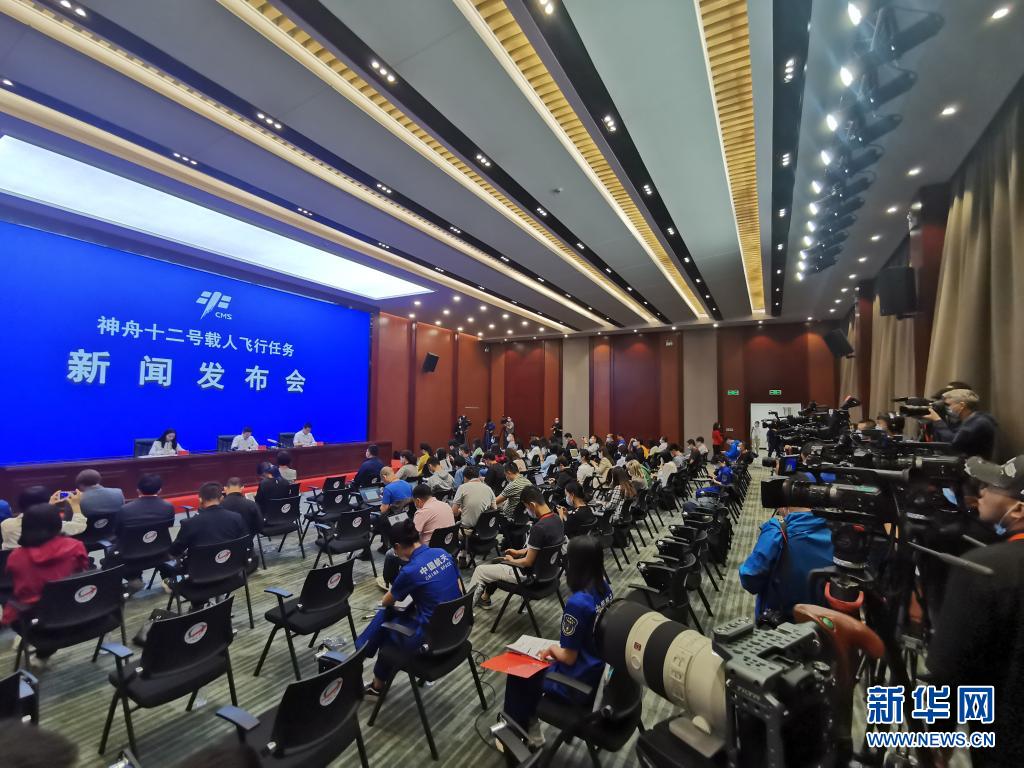 6月16日,神舟十二號(hào)載人飛行任務(wù)新聞發(fā)布會(huì)在酒泉衛(wèi)星發(fā)射中心召開(手機(jī)拍攝)。