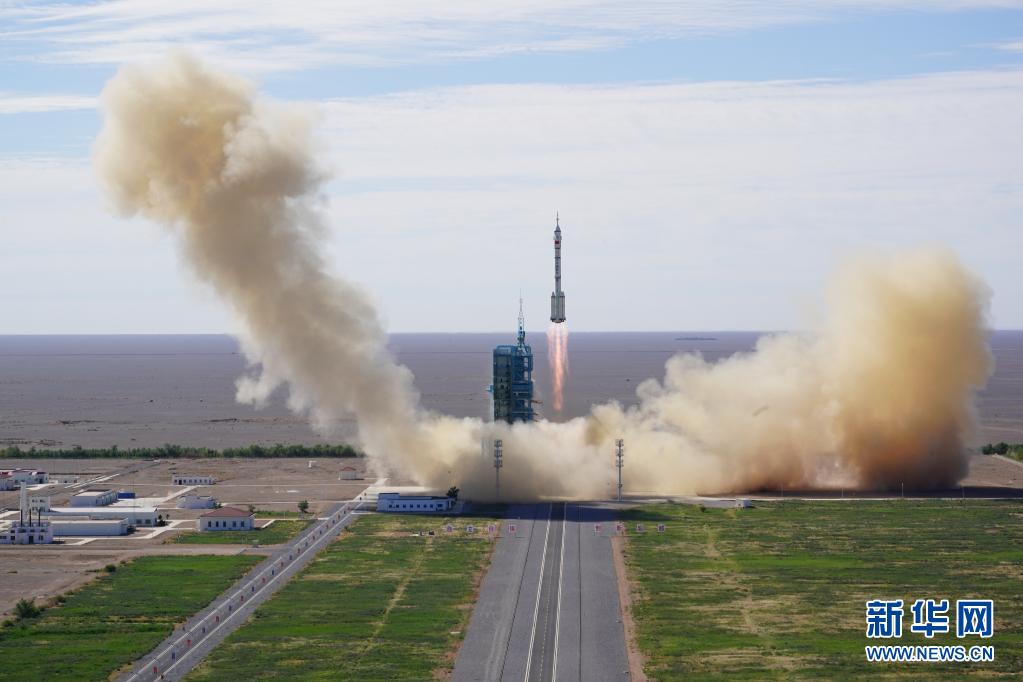 6月17日,搭載著神舟十二號載人飛船的長征二號F遙十二運(yùn)載火箭在酒泉衛(wèi)星發(fā)射中心點(diǎn)火升空。新華社記者 李剛 攝