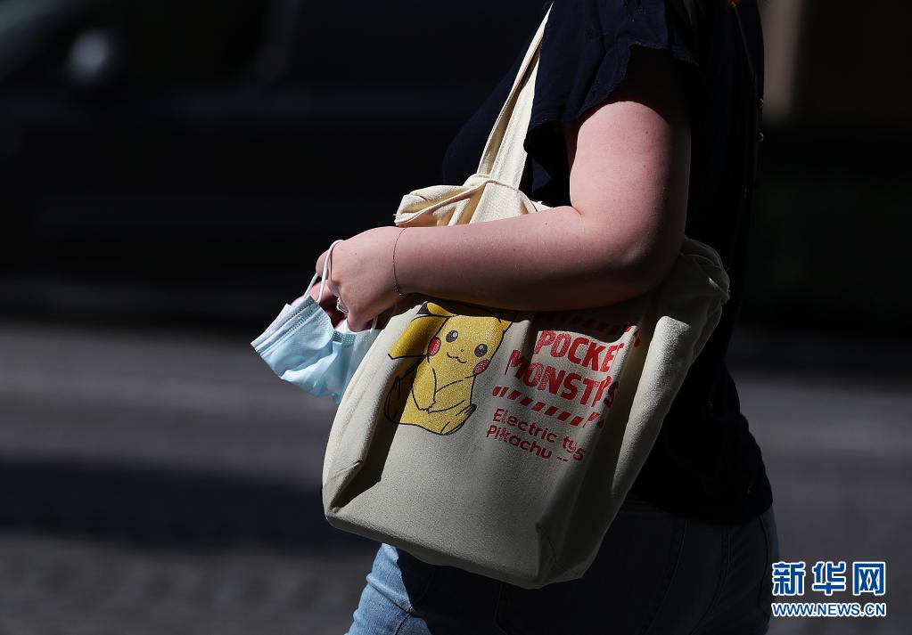 6月17日,一名女子手拎口罩走在法國巴黎香榭麗舍大街上。