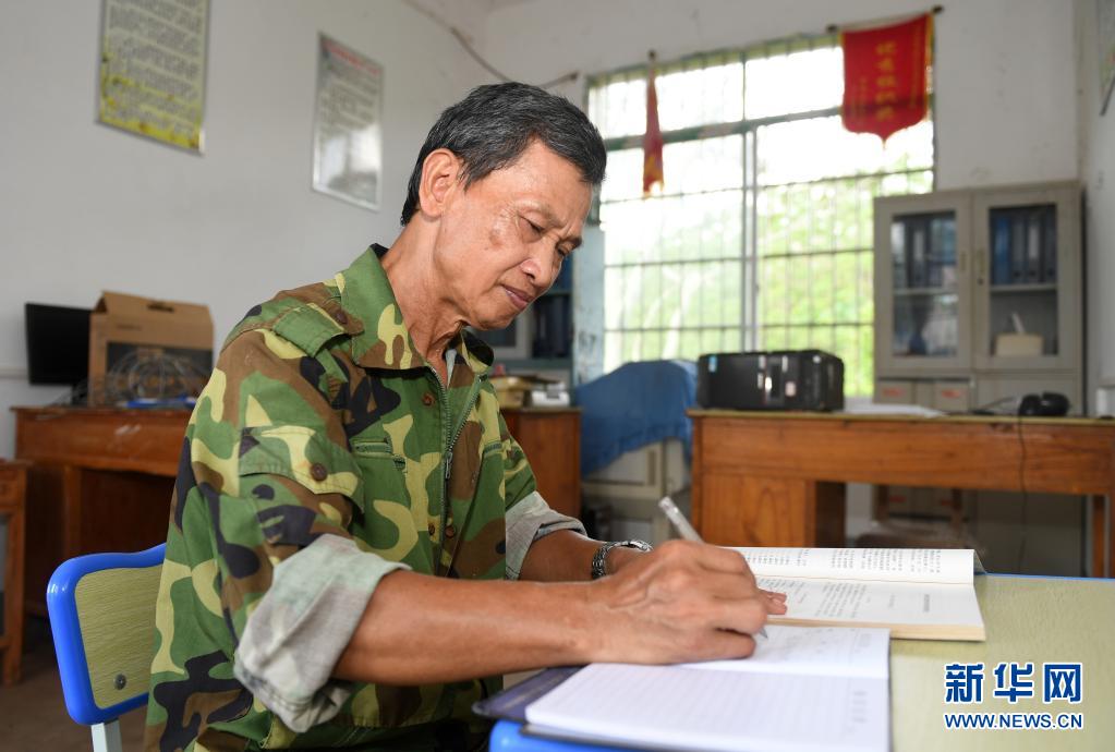 在廣西上思縣那琴鄉(xiāng)中心小學(xué)逢通村教學(xué)點(diǎn),梁志雄老師在辦公室備課(6月16日攝)。新華社記者 陸波岸 攝