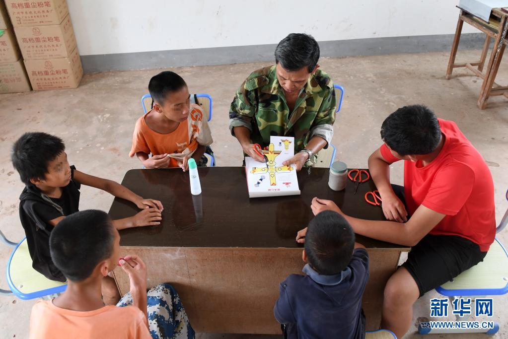 在廣西上思縣那琴鄉(xiāng)中心小學逢通村教學點,梁志雄老師在教學生做手工(6月16日攝)。新華社記者 陸波岸 攝