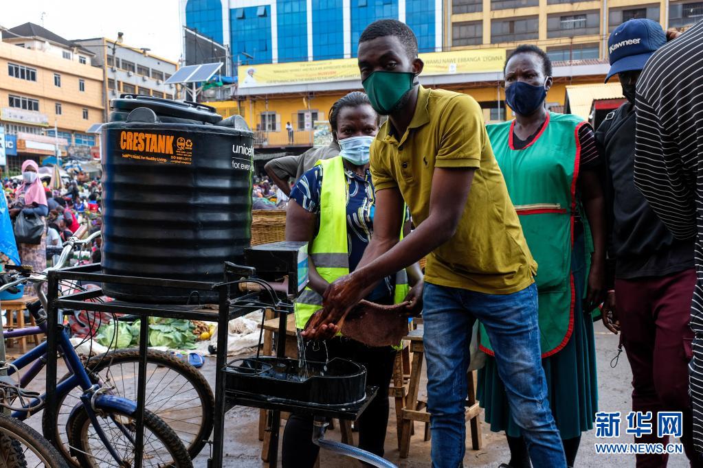 6月23日,一名男子在進入烏干達坎帕拉的納卡塞羅市場前洗手。