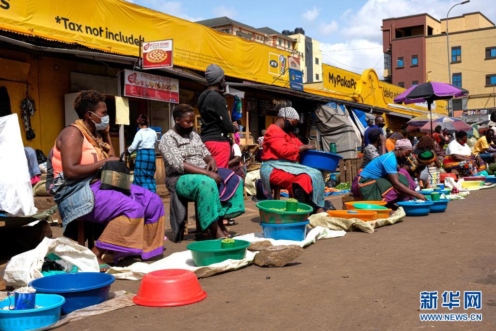 6月23日,商販們?cè)跒醺蛇_(dá)坎帕拉的納卡塞羅市場(chǎng)販賣商品。
