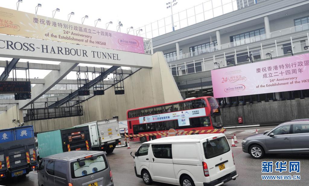 6月29日拍攝的香港紅磡海底隧道港島出入口的海報(bào)。