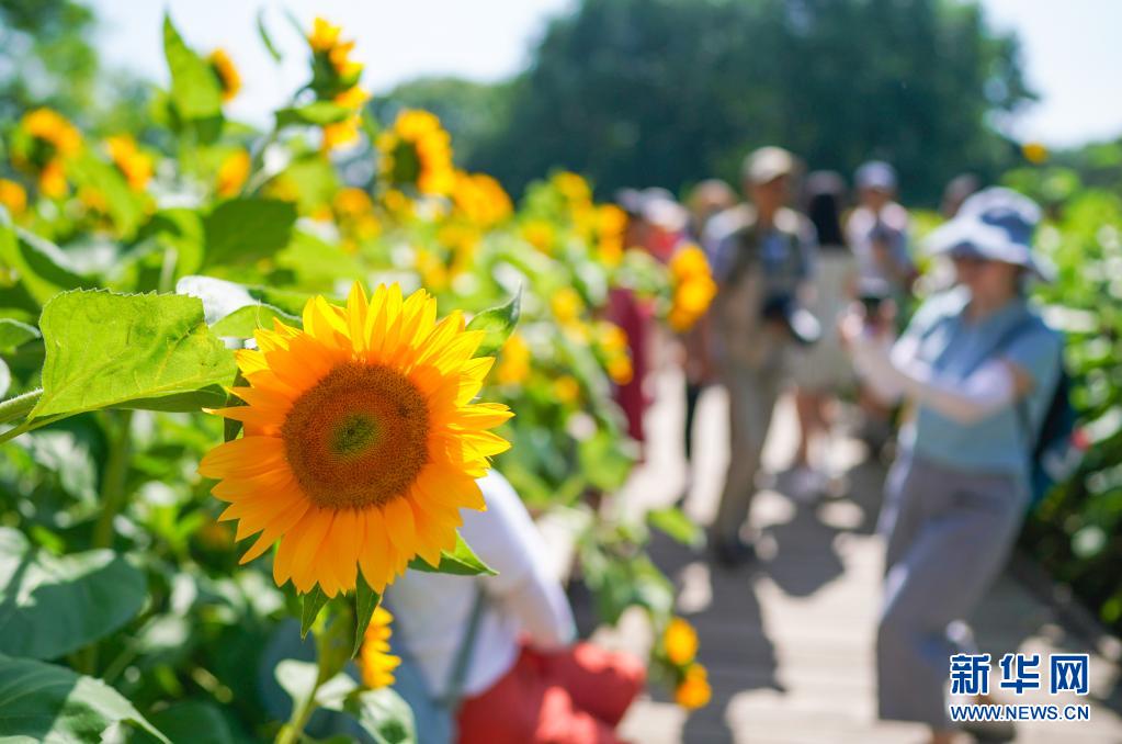 日前,北京奧林匹克森林公園北園的向日葵進(jìn)入盛花期,眾多市民和游客前來(lái)觀賞。