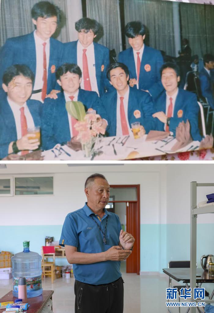 這是一張拼版照片:上圖為20世紀(jì)80年代杜寶柱(后排中)參加國(guó)際比賽時(shí)和隊(duì)員們的合影(受訪者供圖);下圖為杜寶柱教練在塔城市第二小學(xué)宿舍內(nèi)整理裝備,準(zhǔn)備出門(mén)帶隊(duì)訓(xùn)練(6月12日攝,新華社記者 胡虎虎 攝)。