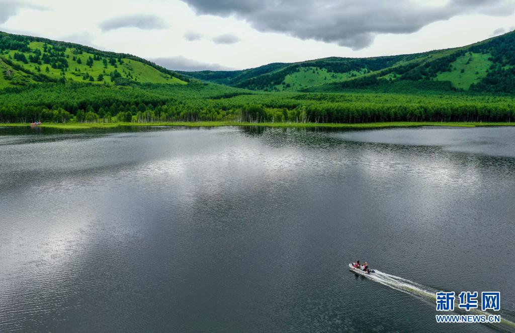這是7月14日拍攝的阿爾山國家森林公園內(nèi)的烏蘇浪子湖風光(無人機照片)。