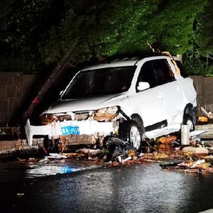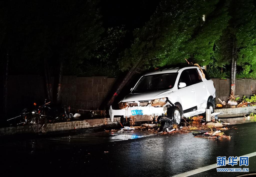 7月21日在310國(guó)道米河鎮(zhèn)段拍攝的一輛因洪水損壞的汽車(chē)。
