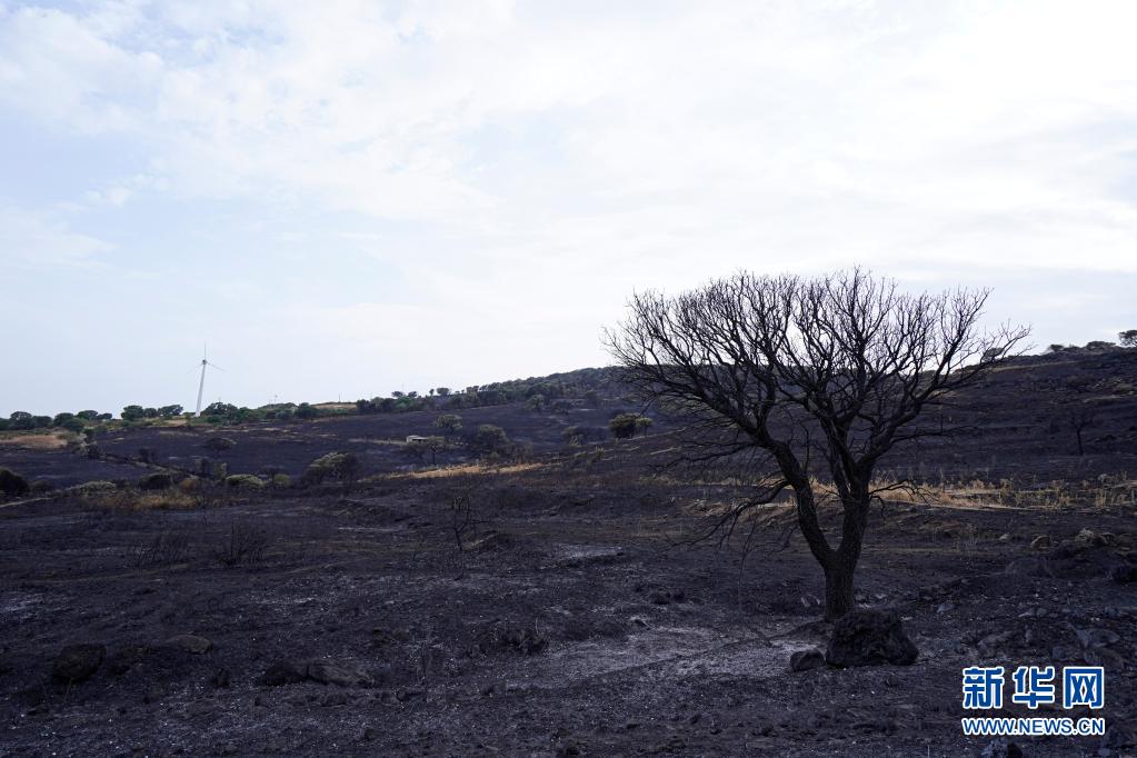 這是7月26日在意大利撒丁島奧里斯塔諾拍攝的被燒毀的樹木。