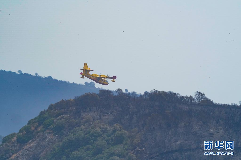 7月26日,滅火飛機(jī)在意大利撒丁島奧里斯塔諾參與滅火作業(yè)。