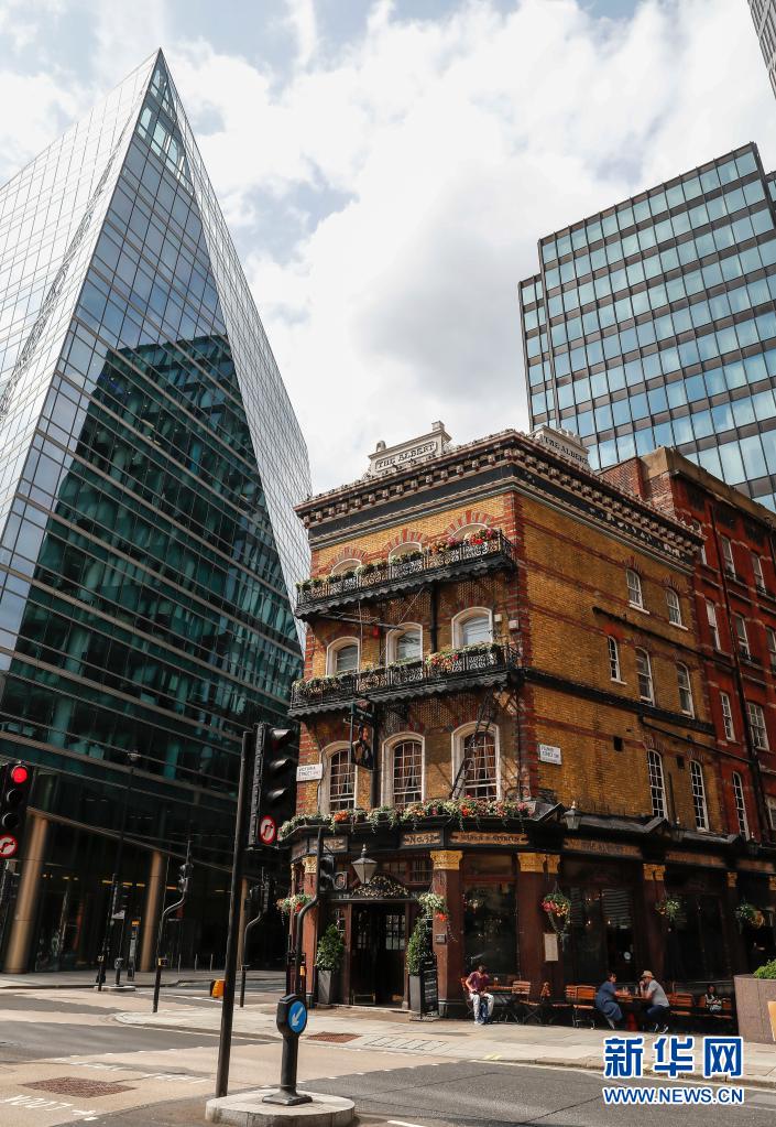 7月26日,人們坐在英國(guó)倫敦市中心一家酒吧的戶(hù)外餐飲區(qū)。