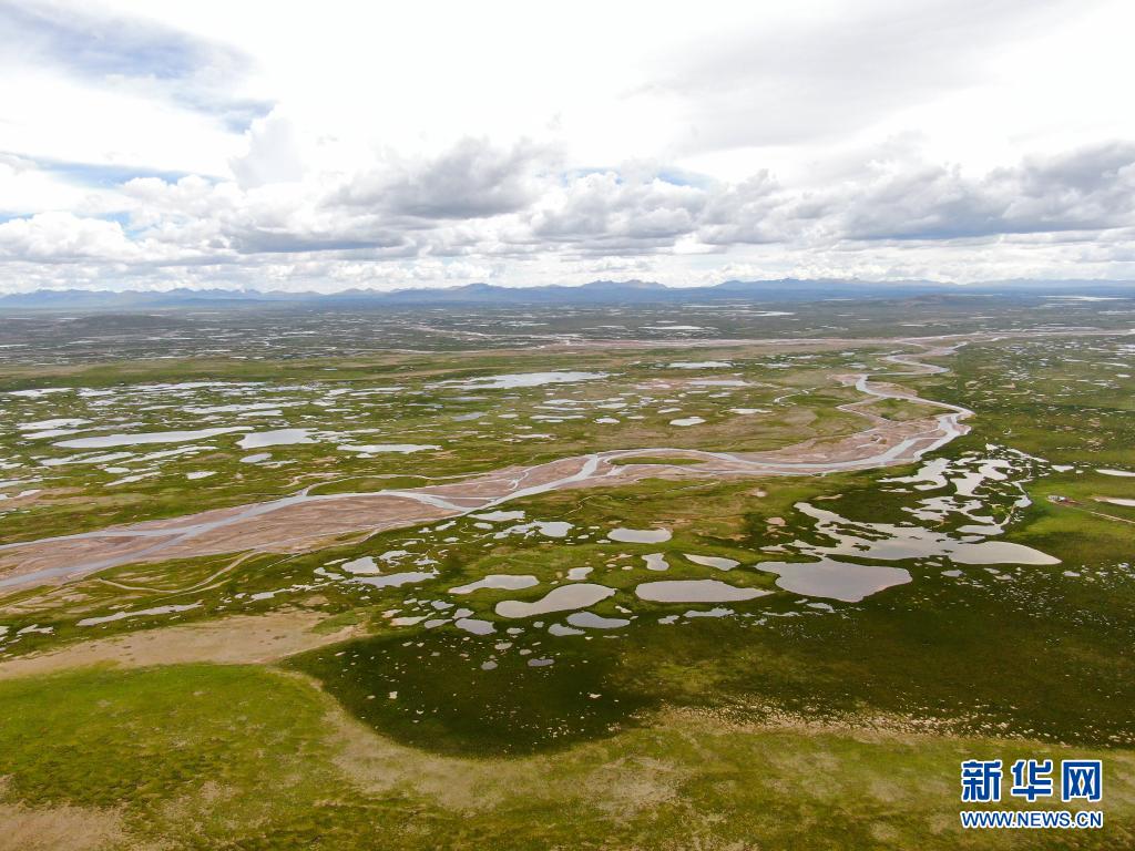這是7月23日拍攝的長江源地區(qū)的查旦濕地(無人機(jī)照片)。