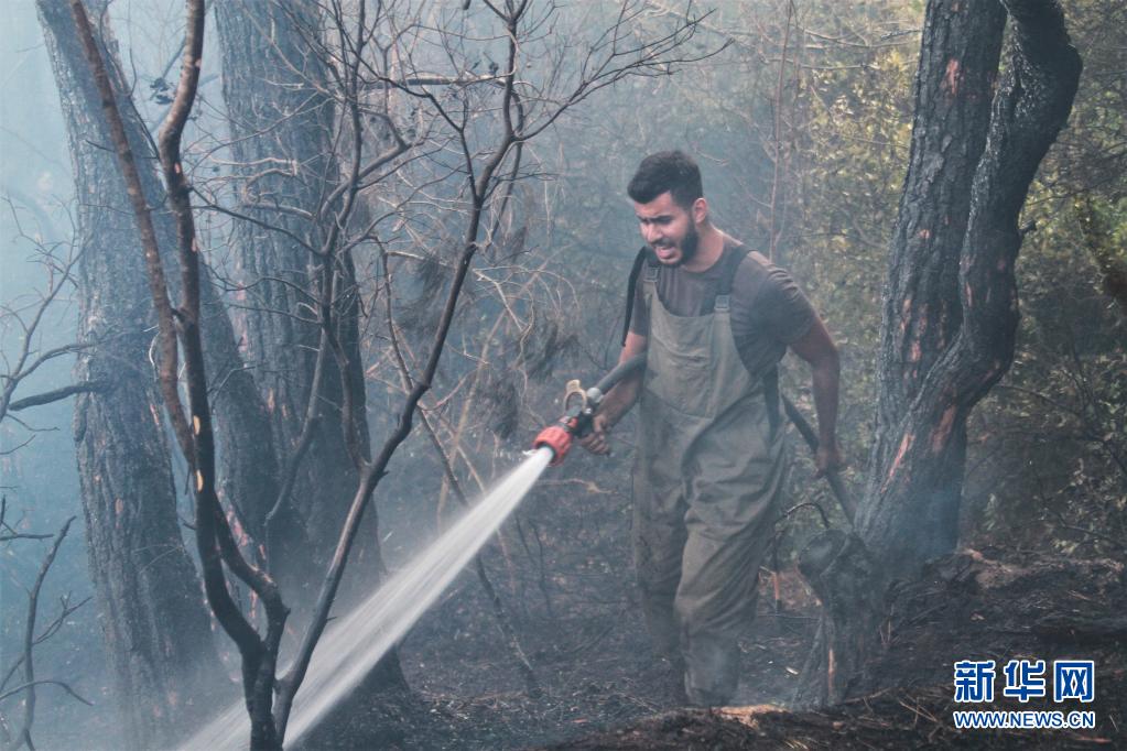7月29日,黎巴嫩民防人員在阿卡爾省火災(zāi)現(xiàn)場滅火。