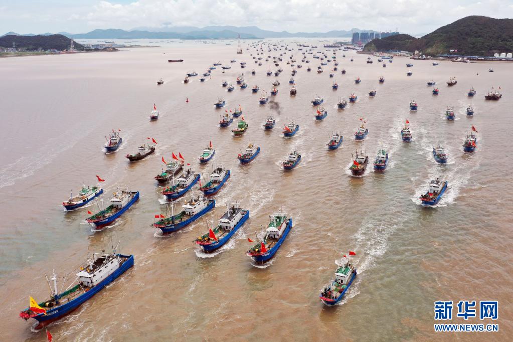 當(dāng)日中午12時(shí),浙江沿海地區(qū)的部分漁船結(jié)束伏季休漁,駛出漁港,奔赴漁場(chǎng)。