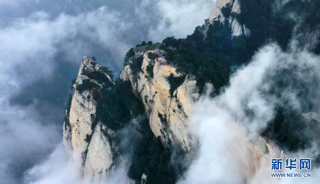 8月14日,奇景幻影的西岳華山東峰一景(無人機照片)。