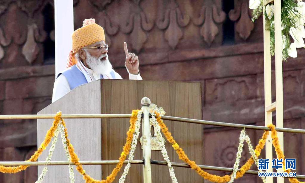 8月15日,印度總理納倫德拉·莫迪在德里舉行的獨立日慶祝儀式上講話。