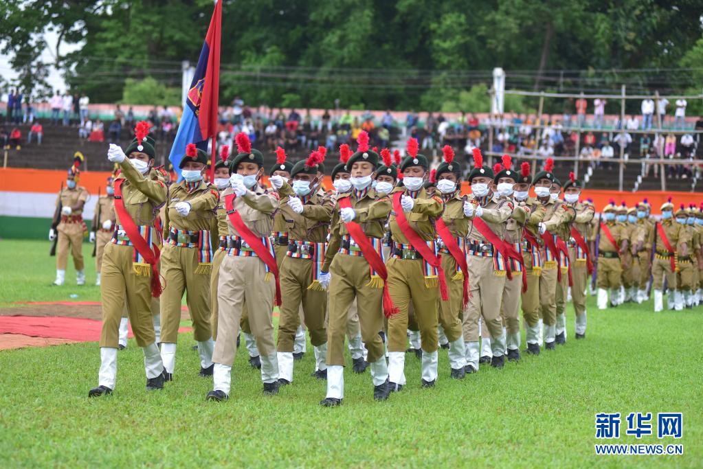 8月15日,警察在印度阿薩姆邦參加獨立日慶?;顒?。
