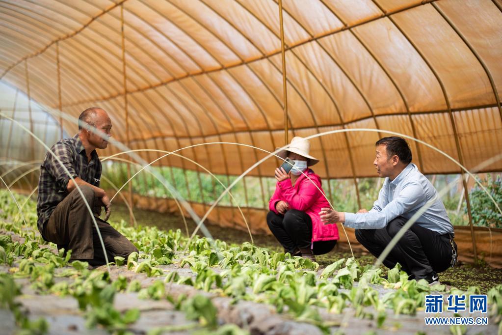 8月13日,在四川省阿壩藏族羌族自治州紅原縣邛溪鎮(zhèn)熱坤村的蔬菜大棚,農(nóng)業(yè)技術(shù)推廣研究員茍俊(右)在給蔬菜種植大戶答疑解惑。