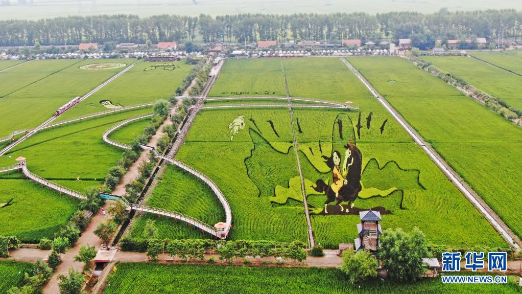 近日,遼寧省沈陽市沈北新區(qū)錫伯龍地創(chuàng)意農(nóng)業(yè)產(chǎn)業(yè)園的稻田畫進(jìn)入觀賞期,多種色彩的水稻組成稻田畫,吸引眾多游人前來觀光體驗。