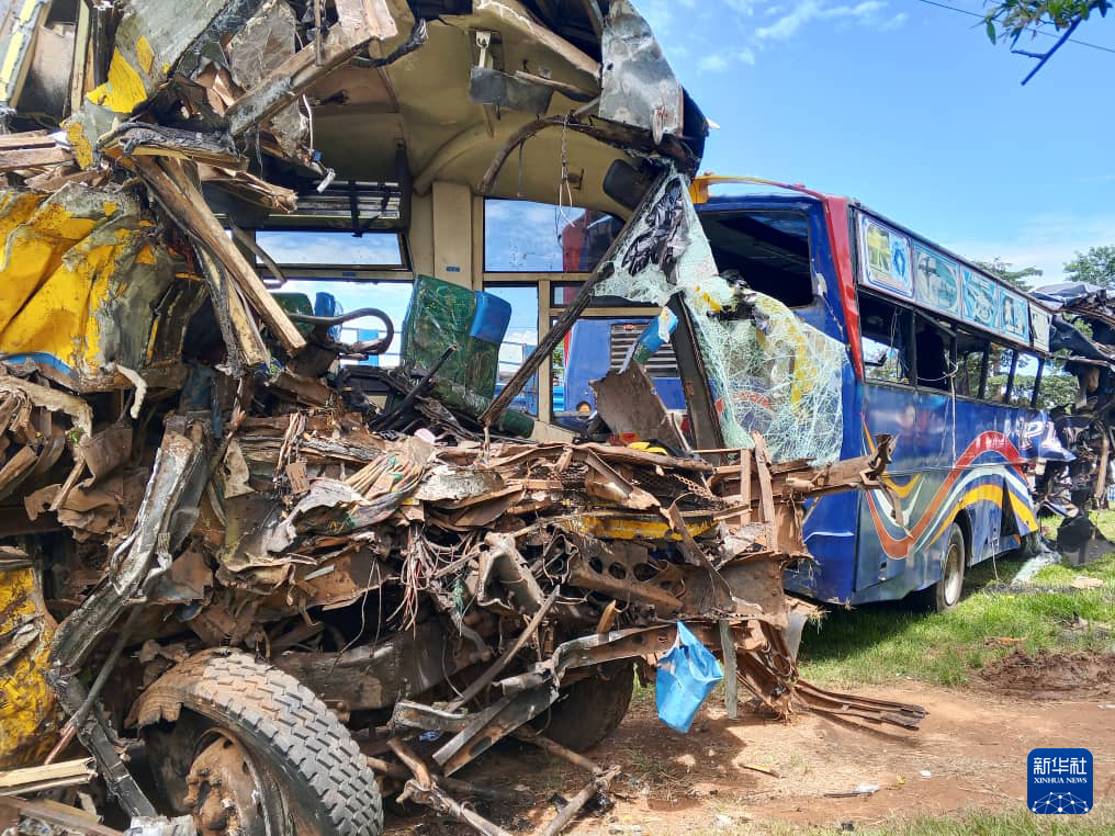 这是10月22日在乌干达西部基里扬东戈地区拍摄的重大交通事故现场。