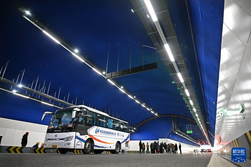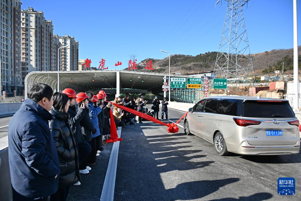 12月26日,开通仪式后首批车辆驶入老虎山隧道。
