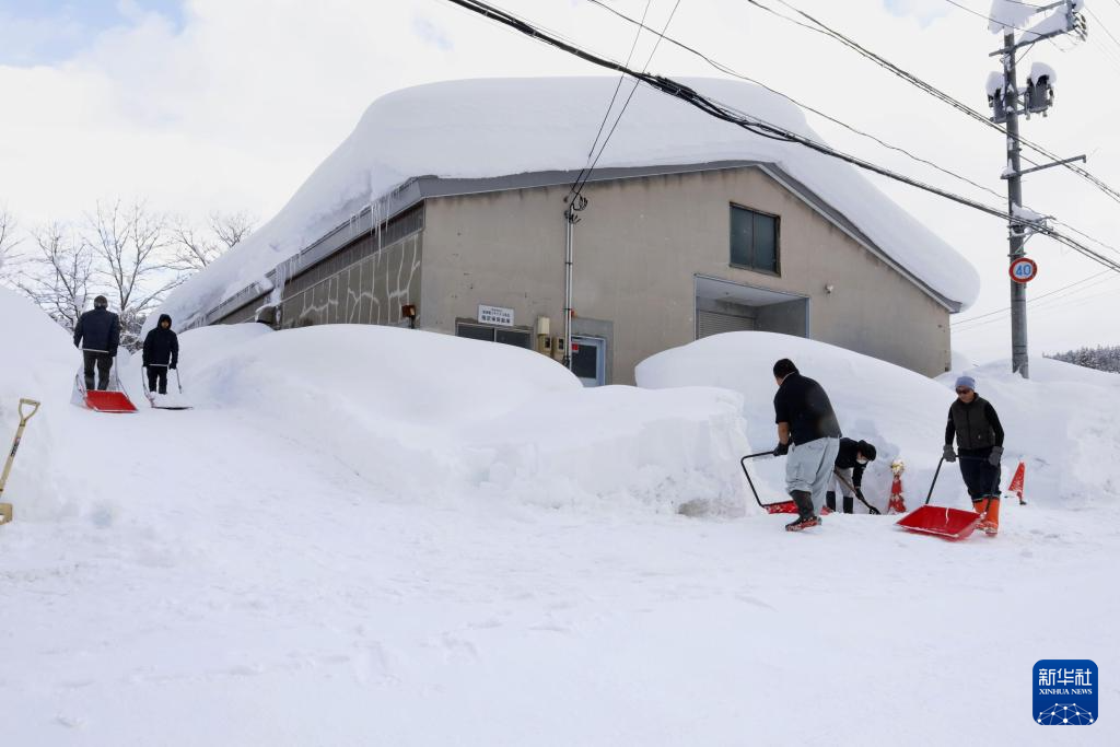 2月2日,人们在日本青森市清理积雪。