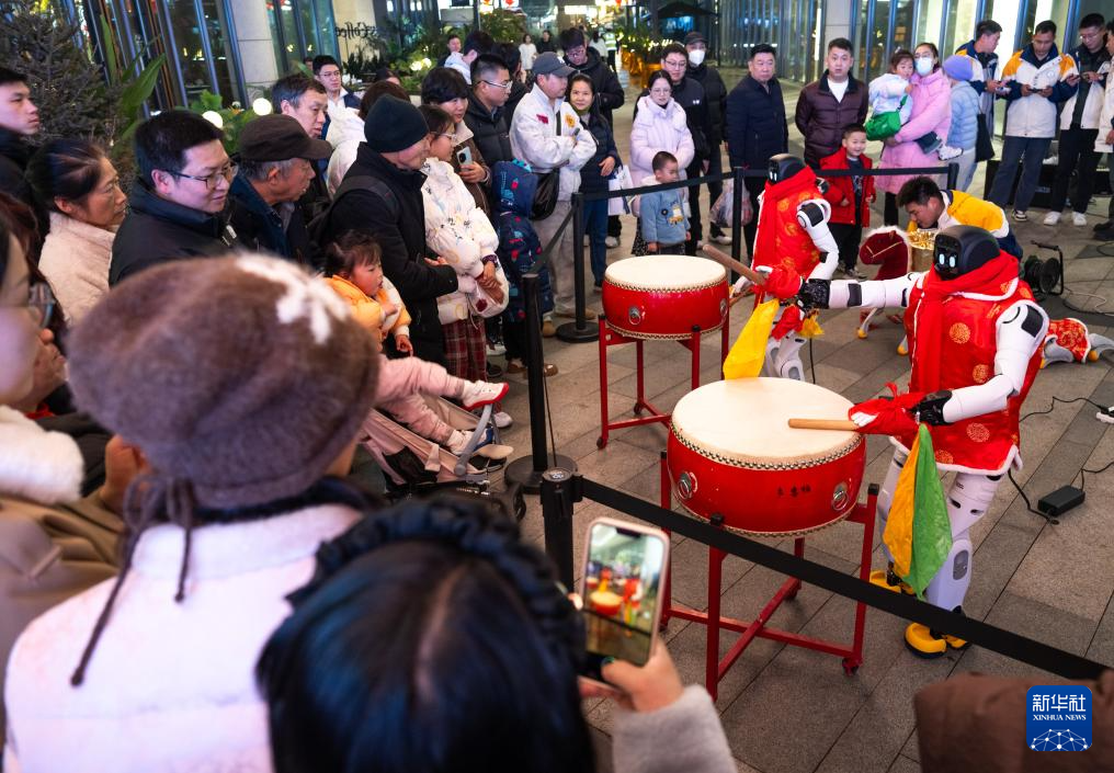 2月5日,消费者在“湖北新春国际消费季”活动现场观看人形机器人表演。