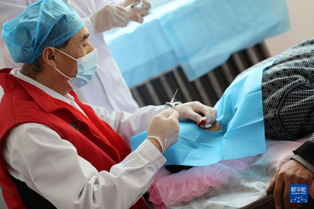 在天津市蓟州区穿芳峪镇卫生院,刘宏亮在给患者治疗(2月4日摄)。