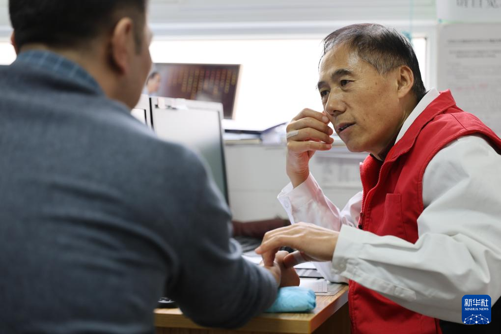 在天津市蓟州区穿芳峪镇卫生院,刘宏亮在给患者把脉(1月30日摄)。