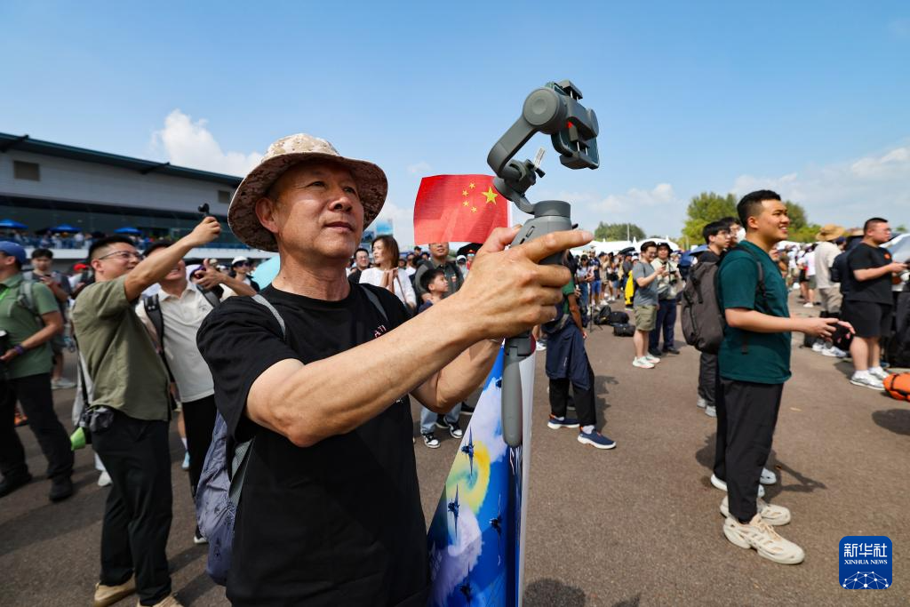 2月7日,在新加坡樟宜展览中心,观众观看中国空军八一飞行表演队的飞行表演。新华社发(朱姜海摄)