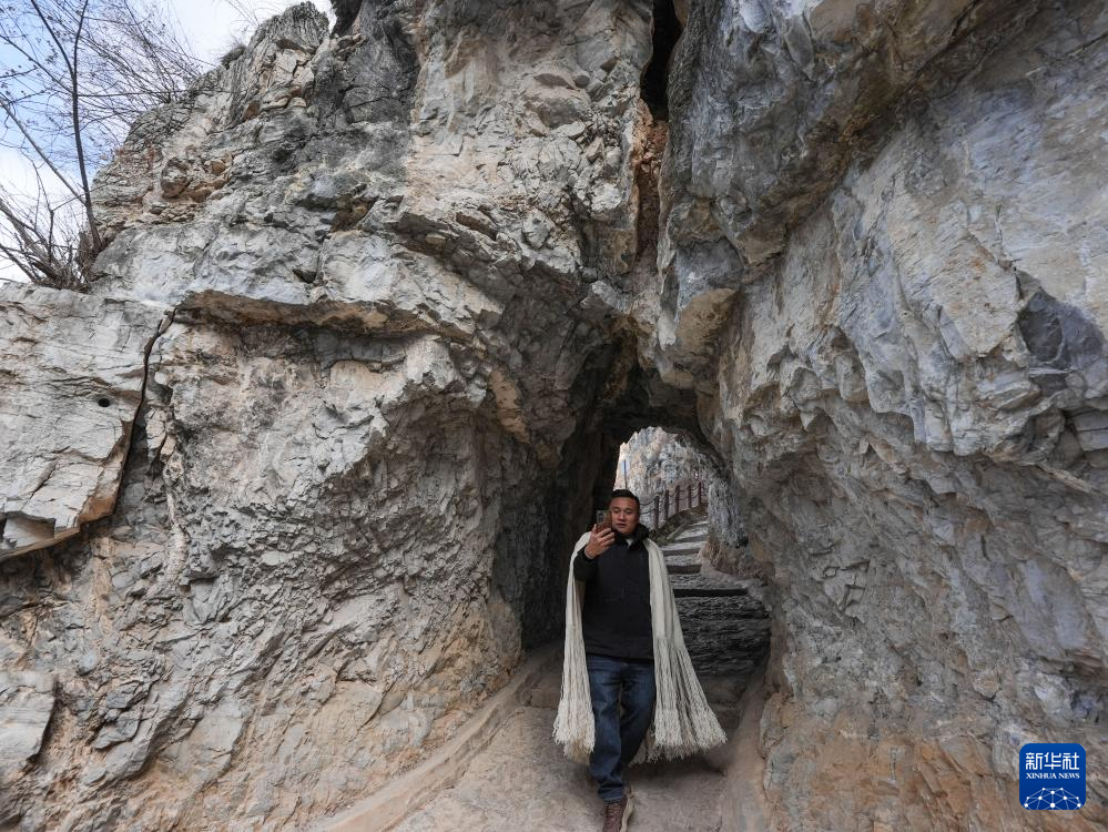 1月29日,郑望春用手机拍摄古路村骡马道并准备发布在个人社交媒体账号上。