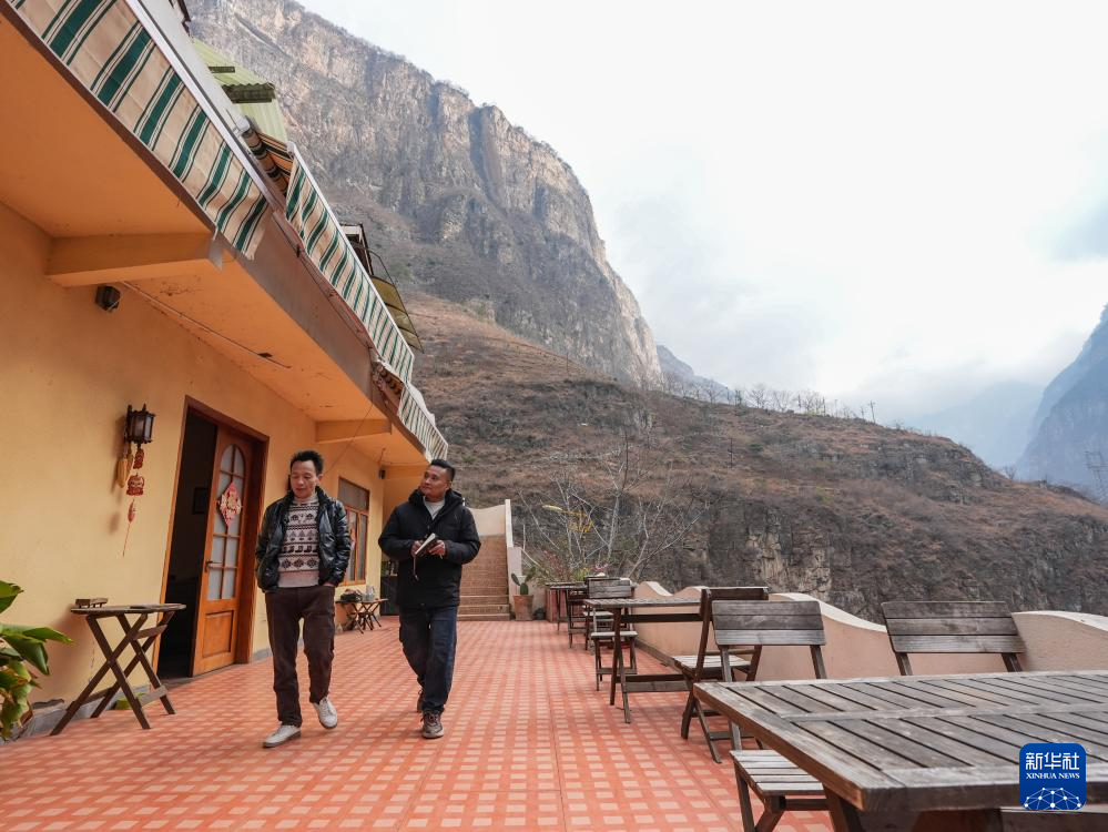 1月29日,郑望春(右)和古路村阿兰之若民宿老板兰绍明交流民宿经营情况。