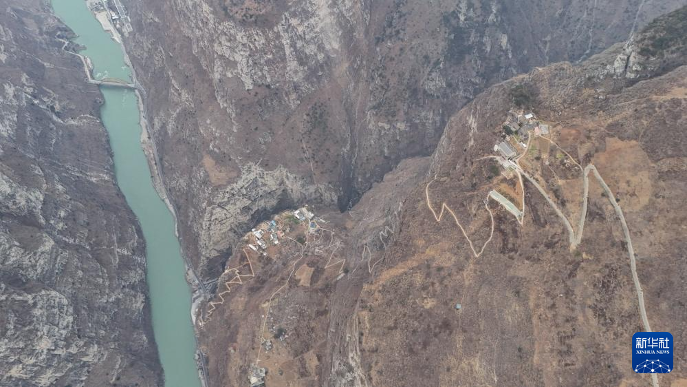这是1月29日拍摄的地处大渡河大峡谷的四川省汉源县永利彝族乡古路村(无人机照片)。