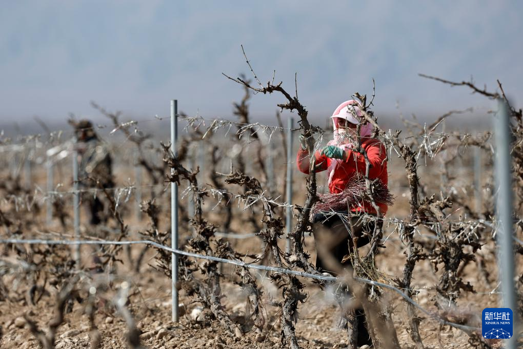 随着气温回暖,在宁夏贺兰山东麓的优质酿酒葡萄产区,数十万亩酿酒葡萄结束“冬眠”,迎来春季展藤。冬藏埋土、春季展藤,是我国北方一些葡萄产区独特的农耕措施,以避免冬季低温冻伤葡萄藤。宁夏贺兰山东麓位于北纬37度至39度,是我国最大的酿酒葡萄集中连片种植区和酒庄酒产区。
